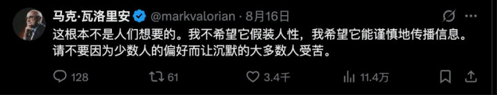 比如就在8月16日,OpenAI宣布会让GPT-5由以前的过于正式,变为更加温暖和友好时,也有网友反对让GPT-5过度人格化。