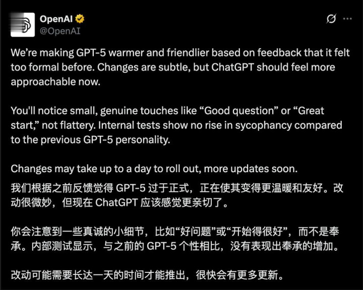 这次发布会风波,引发了OpenAI对ChatGPT产品「模型人格」的重视,这也是一个很好的优化契机。
